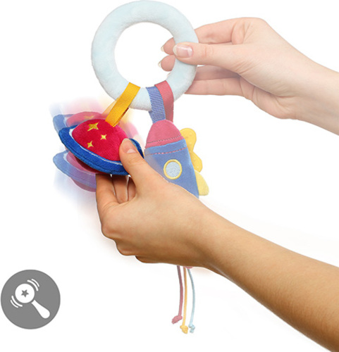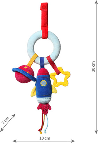 Jucăria educațională cu design de elemente spațiale va introduce copilul într-o lume diversă de culori, sunete și forme. Metoda de fixare a jucăriei cu Velcro permite agățarea jucăriei de toate tipurile de scaune auto sau cărucioare. Datorită acestui lucru, el poate însoți copilul în timpul călătoriilor și plimbărilor.
