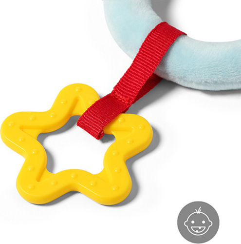 - sprijină dezvoltarea manuală a copilului încurajându-l să apuce elemente. Copilul poate muta cu ușurință jucăriile din mână în mână, exersând astfel capacitatea de a apuca.