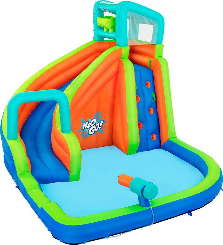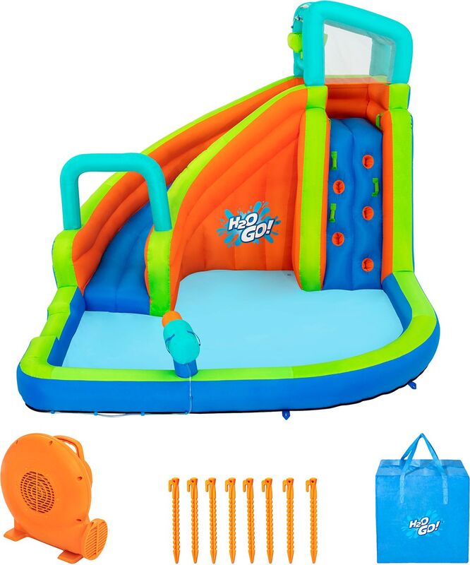 Transformați grădina dumneavoastră într-un paradis acvatic palpitant cu mega parc acvatic Bestway® H2OGO!® Turbo Slide. Cu dimensiuni generoase de 365 x 320 x 270 cm, acest parc acvatic oferă distracție nesfârșită pentru până la 5 copii și se asigură că lunile de vară sunt pline de acțiune.