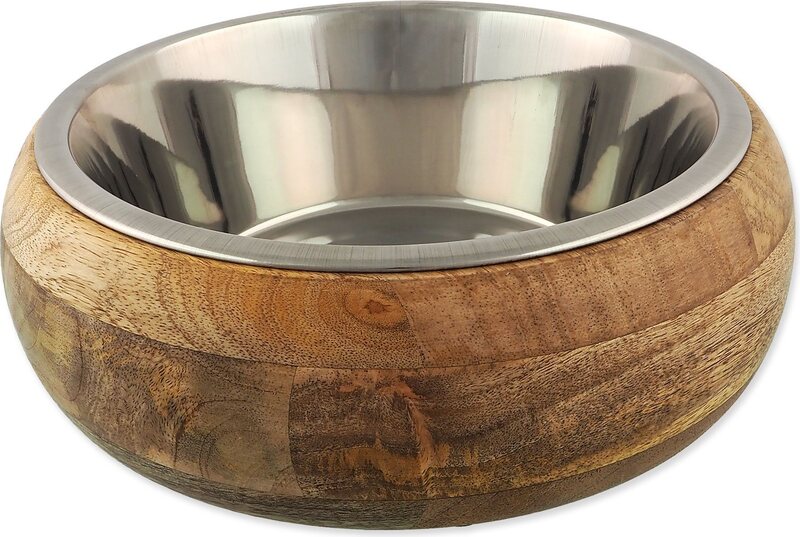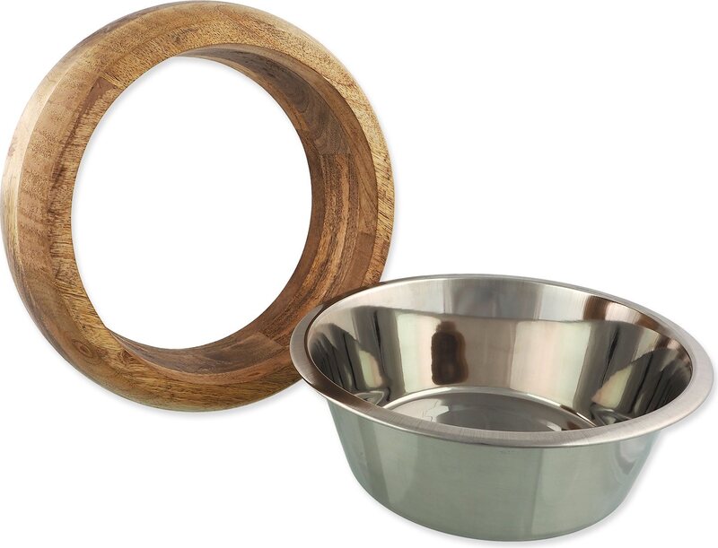 Bol din oțel inoxidabil rezistent, combinat cu un suport din lemn natural. Forma rotunjită oferă un aspect modern și se potrivește în orice interior. Datorită bolului din oțel inoxidabil detașabil, este ușor de întreținut și este practic pentru hrănirea zilnică și apă.