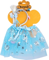 Costumul mărimea M este destinat fetelor în intervalul de vârstă 6-8 ani (116-128 cm). O rochie neagră cu o fustă pufoasă este decorată cu elemente argintii și margini argintii.