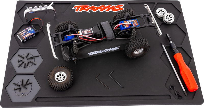 Pad de lucru robust Traxxas 49x33cm, pentru service-ul modelelor RC și alte lucrări de modelare. Previne deteriorarea mesei de lucru, rezistent la substanțe chimice. Compartimente practice, inclusiv două magnetice, pentru organizarea pieselor și uneltelor. Potrivit pentru modele RC la scară 1:16, 1:18 și mai mici.