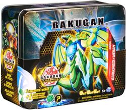 O cutie de tablă elegantă, cu un design nou, care conține până la 6 Bakugan, 2 pachete de 40 de cărți și 12 jetoane Baku.