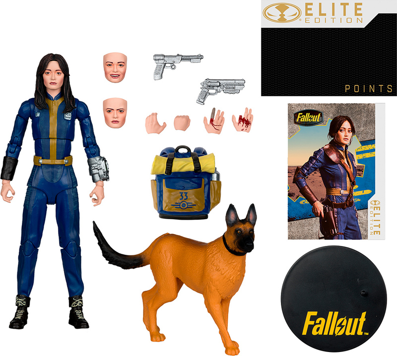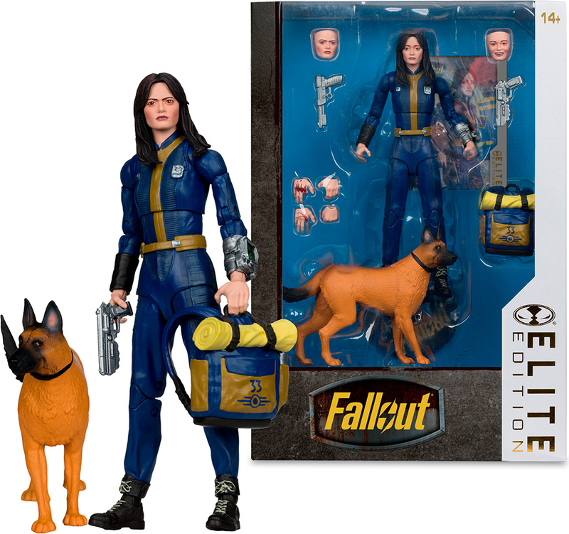 Porniți-vă în pustie alături de una dintre cele mai îndrăgite eroine ale serialului Fallout. Lucy în iconic Vault Suits vine în ediția premium Elite, plină de accesorii detaliate, piese interschimbabile și partenerul său loial, câinele.
