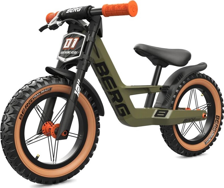 BERG Biky Trail Green Handbrake este o bicicletă de echilibru pentru copiii cu vârste cuprinse între 2 și 5 ani, care sunt gata să-și aleagă singur drumul. Indiferent dacă doriți să explorați orașul sau să vă bucurați de un teren mai accidentat, acest Biky este pregătit pentru aventură. Deci are un aspect elegant de teren, aripi grozave, frână de mână și plăcuță de înmatriculare personalizabilă.