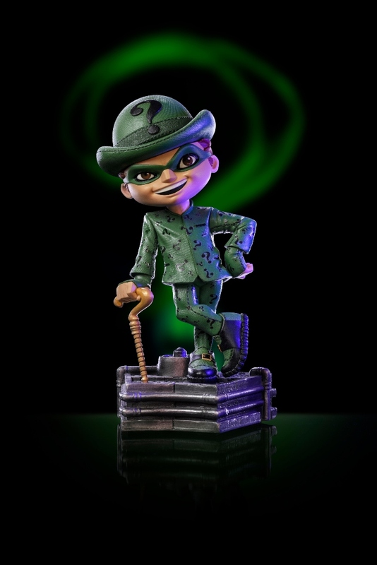 The Riddler – Batman Forever – MiniCo este o figură de colecție stilizată în format Toy Art de la Iron Studios, care surprinde unul dintre cei mai clasici dușmani ai lui Batman – Riddler – în forma sa distractivă și excentrică din filmul Batman Forever (1995), regizat de Joel Schumacher. În film, personajul este interpretat de actorul Jim Carrey.