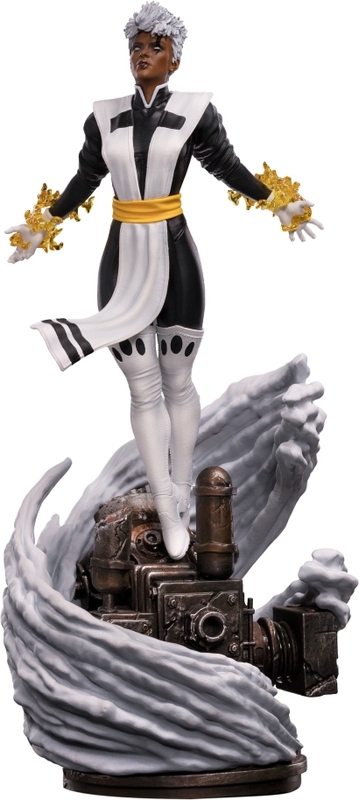 Storm este îmbrăcată într-o robe bicoloră alb-negru cu un brâu aurie-gălbui și plutește deasupra unui soclu format din elemente mecanice rustice. Figura face parte dintr-o dioramă tematică din universul Age of Apocalypse, care a fost prezentată la evenimentul Inside Iron Studios Day și este disponibilă individual.