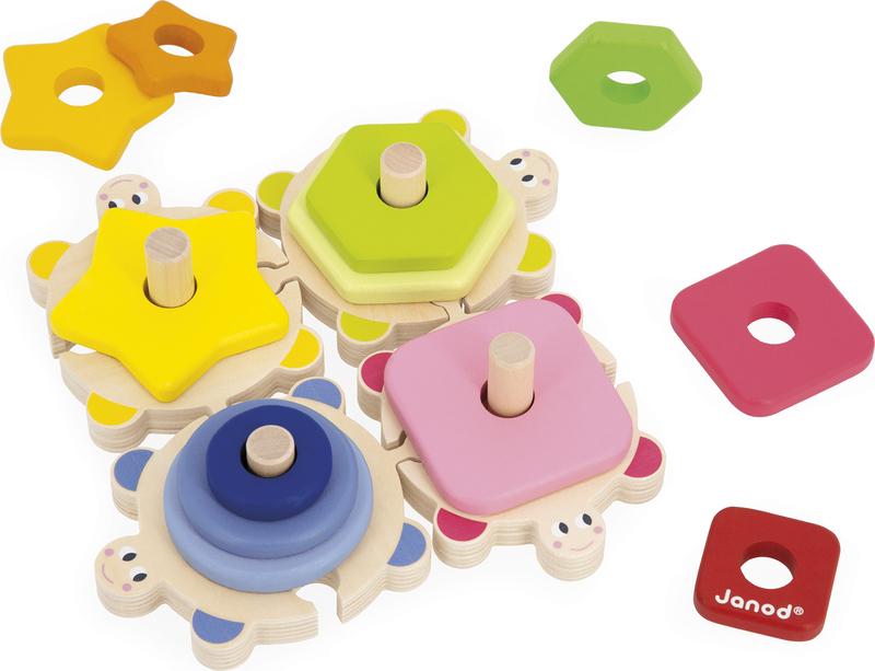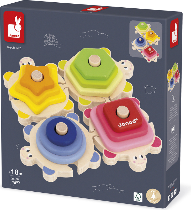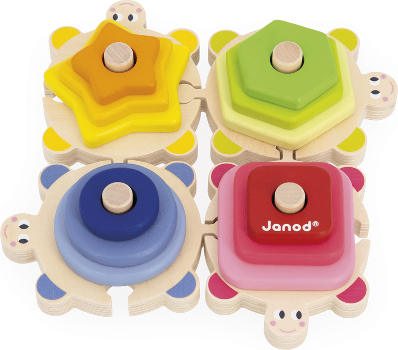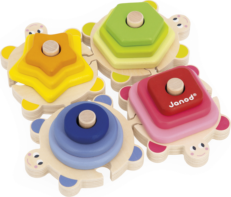 Janod Puzzle și joc de inserție din lemn Țestoase Învățăm formele și culorile