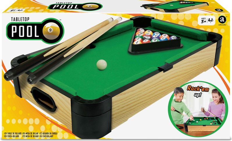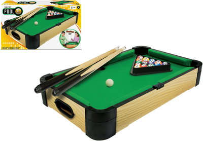 Masă de biliard compactă de 40 cm oferă jocul clasic cu "opt". Jocul include 16 bile – una albă și 15 colorate (7 cu dungi, 7 pline și bila neagră opt).După lovitura de început, jucătorii revendică fie bilele cu dungi, fie bilele pline, iar scopul este de a lovi legal toate bilele proprii și, în final, bila neagră opt în buzunarul ales. Masa este livrată cu un suport triunghiular pentru bile și bila albă, pregătită pentru un joc rapid. După lovitura de început, se decide cine va ținti la ce grup de bile, aplicându-se regulile biliardului clasic.