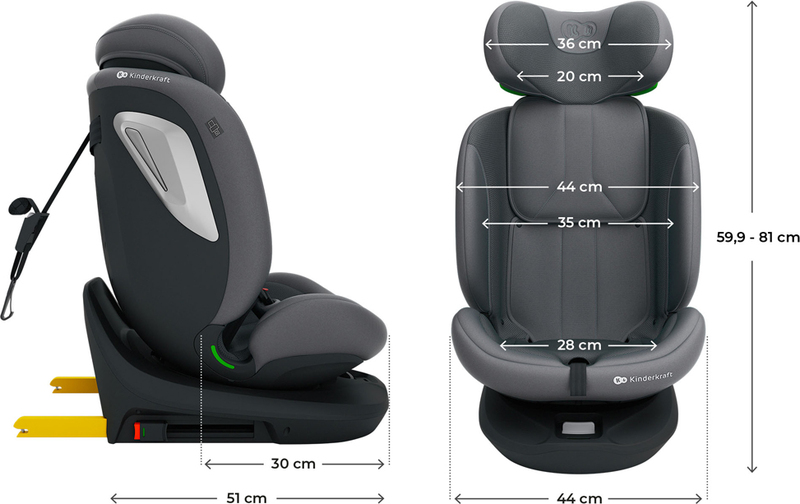 Kinderkraft I-GROW 2 PLUS este un scaun auto 4 în 1, care înlocuiește mai multe modele și acoperă întreaga perioadă de utilizare a scaunului auto: de la nou-născut (40 cm) până la 12 ani (150 cm). La început, servește ca un scaun pentru cei mai mici, apoi permite o utilizare extinsă cu spatele la direcția de mers (RWF) până la 105 cm, ceea ce crește semnificativ siguranța copilului în timpul călătoriei. În cele din urmă, se transformă într-un scaun auto confortabil pentru un copil mai mare, prins cu centura de siguranță a mașinii. Un singur produs permite până la 12 ani de călătorii liniștite cu copilul fără a fi necesară înlocuirea frecventă a scaunului auto.