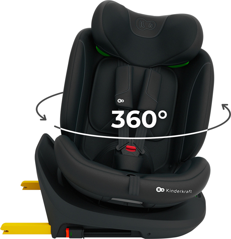 - Bază rotativă EASY SPIN 360° – rotire confortabilă a scaunului spre ușă, prindere mai ușoară a centurilor și schimbarea direcției de mers.