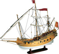 Kit de constructie model static al navei istorice AMATI Polacca nava venetiana din 1750, varianta kit. A navigat la începutul secolului al XVIII-lea în Marea Mediterană și a fost folosit ca navă comercială sau de marfă. Flota venețiană a folosit Polack pentru a-și proteja căile maritime de pirații dalmați, greci și turci. Piesele din lemn precum chila și căptușeala sunt tăiate cu laser, sunt incluse catarge, pânze, tachelaj, precum și tunuri, planuri și un suport decorativ pentru nave.