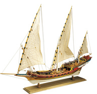 Kit de construcție a unui model static al navei istorice AMATI Sciabecco navă pirați din 1753 la scară 1:60, kit. Nava pirat era înarmată cu 14 tunuri de calibru mediu. Piesele din lemn, cum ar fi chila și căptușeala sunt tăiate cu laser, sunt incluse pânze, frânghii, catarge, accesorii, accesorii și planuri.