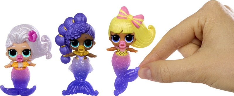 Transformă-ți surioara L.O.L. într-o sirenă! În pachet vei găsi o coadă care își schimbă culoarea în apă rece. Trebuie doar să îi pui surioarei coada. Păpușa cu coadă poate fi expusă în ambalaj.