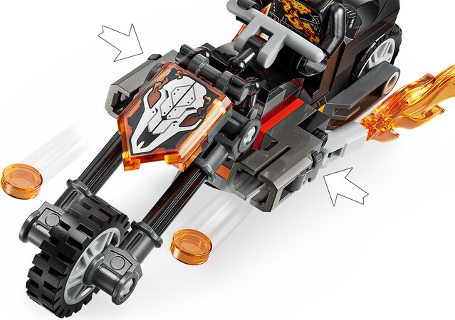 Porniți acțiunea supereroilor cu viteză mare cu setul Spider-Man vs. Ghost Rider pe motocicletă (76335) pentru băieți și fete de 6 ani și peste. Motocicleta din setul LEGO® | Marvel este pregătită pentru luptă, iar jocurile creative ale copiilor sunt susținute de 2 minifigurine dinamice, Spider-Man și Ghost Rider. Minifigurina Ghost Rider arată ca un schelet, cu flăcări care îi ies din mâini și din cap. La evacuarea motocicletei sale iconice pot fi atașate 2 piese de flacără, iar aceasta dispune de 2 lansatoare de proiectile integrate.