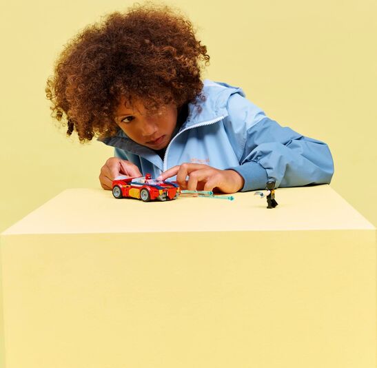 Luptele acțiune ale supereroilor au loc în principal în mașina lui Spider-Man, care are în spate un lansator cu 2 lansatoare cu arc în partea din față a vehiculului. Acest set de construcție va încânta toți micii supereroi, fanii filmelor Marvel și colecționarii de piese cu Spider-Man, fiind un cadou perfect pentru zile de naștere. Cu ajutorul aplicației LEGO Builder, copiii pot construi cu încredere – modelul poate fi mărit, rotit în mediu 3D și pot urmări progresul lor printr-un ghid digital clar. Setul de construcție conține 134 de piese.