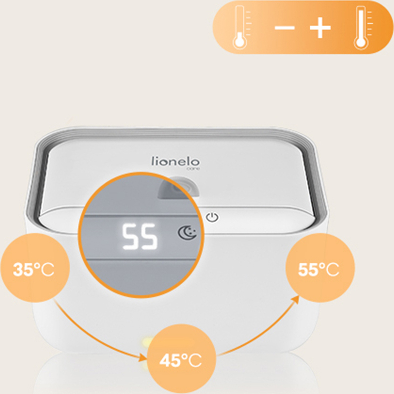 Lionelo BabyBliss este un încălzitor modern de șervețele, care face ca fiecare schimbare de scutec pentru copil să fie mult mai plăcută. Datorită tehnologiei de încălzire surround, încălzitorul menține eficient temperatura setată timp de câteva ore și, în același timp, economisește energie. Cele trei niveluri de încălzire – 35 °C, 45 °C și 55 °C permit părinților să ajusteze temperatura șervețelelor în funcție de nevoile copilului și de condițiile actuale.