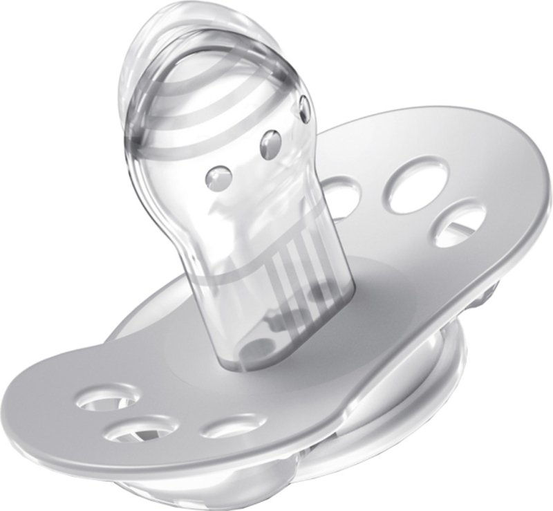 - Antialergic: Siliconul delicat din suzetă este un material neutru pentru bebeluș, nu provoacă reacții alergice, este fără gust și miros, ceea ce este deosebit de important în această etapă, când copilul este sensibil la stimulii externi.