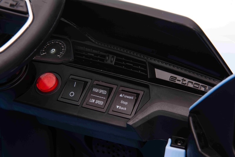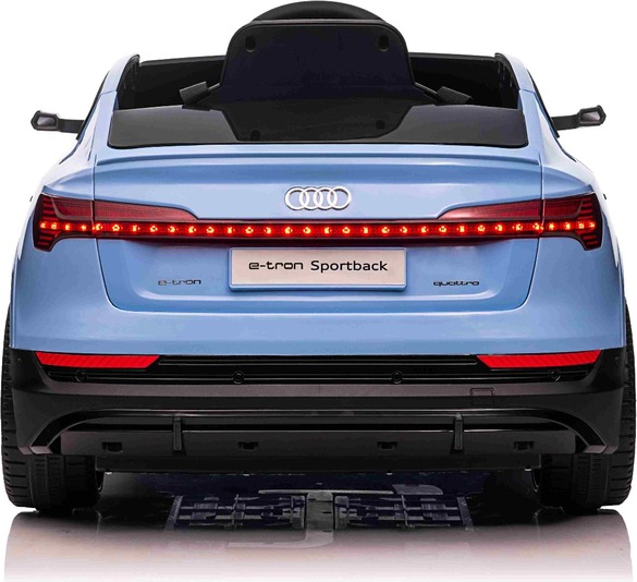 Autoturism electric licențiat Audi E-TRON Sportback 12V NOUTATE: Baterie litiu (10.8V/5Ah) Autoturism electric perfect cu un aspect futurist pentru copii, care combină un aspect luxos și tehnologii moderne într-unul. Designul elaborat este completat de echipamente atractive, cum ar fi un player MP3 cu intrare USB/AUX, iar volumul tuturor efectelor sonore este ușor de controlat direct de pe player.Desigur, există și redarea muzicii prin volanul multifuncțional, iluminare LED frontală și un indicator al stării bateriei, care informează despre capacitatea rămasă. Volan multifuncțional - Cu butoane pentru controlul claxonului și schimbarea muzicii. Lumini LED funcționale - Atât față, cât și spate. Autoturismul este echipat cu un sistem de control de la distanță de nouă generație de 2,4 GHz, cu un comutator de pornire iluminat cu un singur buton. Siguranța este asigurată de frâna de urgență de pe telecomandă, care dezactivează imediat toate funcțiile, oferind astfel părinților control total asupra conducerii. De asemenea, nu lipsește centura de siguranță în trei puncte, care oferă siguranță în timpul conducerii.