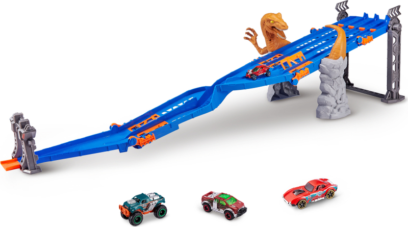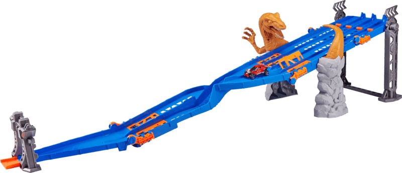 Pista Raptor Attack aduce o dozare de patru ori mai multă adrenalină cu raptorul atacator și capcanele ascunse. Cadoul ideal pentru toți iubitorii de viteză și acțiune!