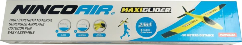 Handbal NINCOAIR Maxi Glider cu anvergura aripilor de 0,85 metri. Construcție ușoară și durabilă cu aerodinamică excelentă pentru un zbor lung. Asamblare foarte usoara fara lipire sau folosire de unelte. Design galben strălucitor pentru o bună vizibilitate. Potrivit pentru copii de la 3 ani. Cu modelul, puteți merge pe o pantă potrivită pentru un timp de zbor mai lung, unde puteți profita de vântul blând care urcă panta și, datorită acestui lucru, aeromodelul se poate ridica și în fluxul de pantă. Când modelul se balansează drept înainte după lansare, puneți o sarcină mică (șurub, șurub etc.) pe vârful modelului, zborul se va nivela într-un zbor alunecat drept în jos și modelul va zbura mai bine.