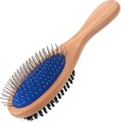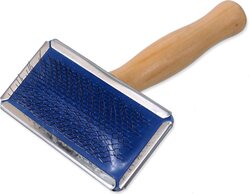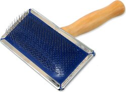 Perie de plastic cu o singură față cu mâner din cauciuc pentru câini . Potrivit pentru câini cu blană lungă , scurtă , creț și aspră . Potrivit și pentru pisici Fabricat din material de calitate Peri metalici extra moi Îngrijire blândă pentru haină Dimensiune 10 x 17 cm