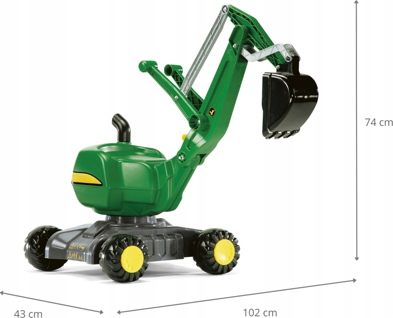 Excavator cu roți pentru copii John Deere Digger Rolly Toys este o jucărie cu șezut și posibilitate de împingere, care este ideală pentru joaca în nisip și în grădină. Micii constructori se pot bucura pe deplin de muncă pe propriul șantier.