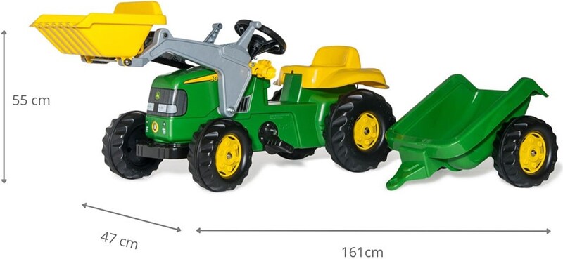 Rollytoys Tractor cu pedale Rolly Kid John Deere cu remorcă și încărcător - verde