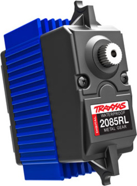 Servo digital puternic Traxxas 2085RL, dimensiune Maxi, rezistent la apă*, roți dințate metalice, corp central din aluminiu, rulmenți cu bile, cuplu 46 kg.cm, viteză 0.13 s/60°, greutate 125g, dimensiuni: 61x26x64mm. Hexagon 25T. Cablu mai lung de 19 cm comparativ cu servo 2085R (13cm).