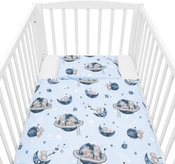 Set de pat pentru copii 2 piese New Baby Teddy bear in space. Setul este fabricat din 100% bumbac. Execuție de calitate și un minunat motiv pentru copii.
