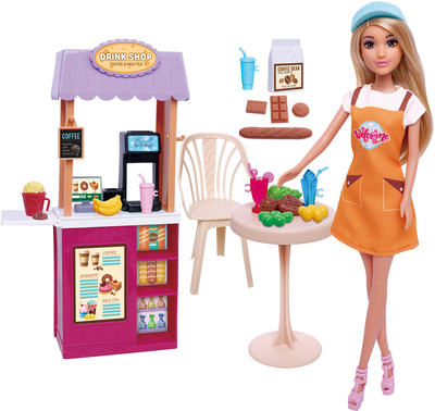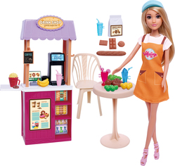 Descoperiți magia atmosferei de cafenea și deveniți barista în colțul dumneavoastră de joacă. Acest set conține o păpușă îmbrăcată în rochie portocalie, un stand cu aparat de cafea, o masă și un scaun, precum și diverse pahare și alimente.
