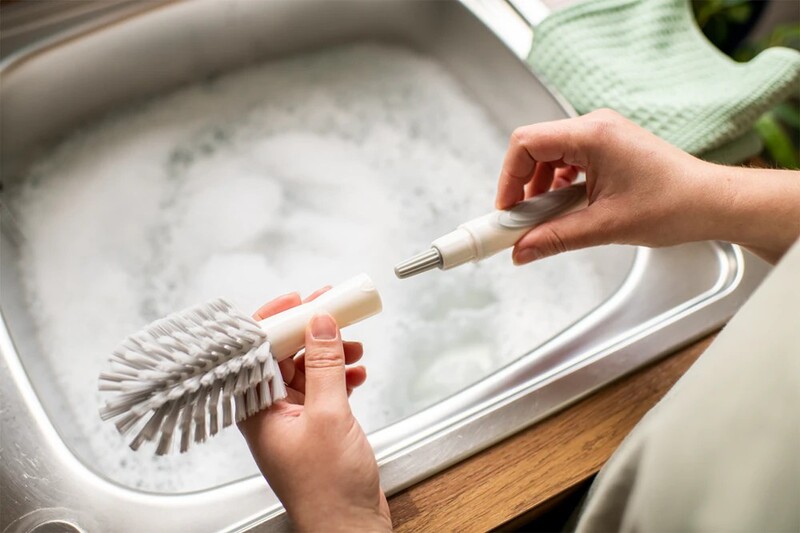 Perii din nailon rezistent și mânerul antiderapant facilitează și eficientizează curățarea sticlelor și vă ajută să ajungeți cu ușurință în locuri greu accesibile.