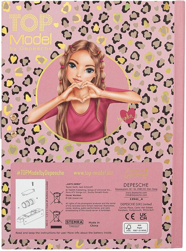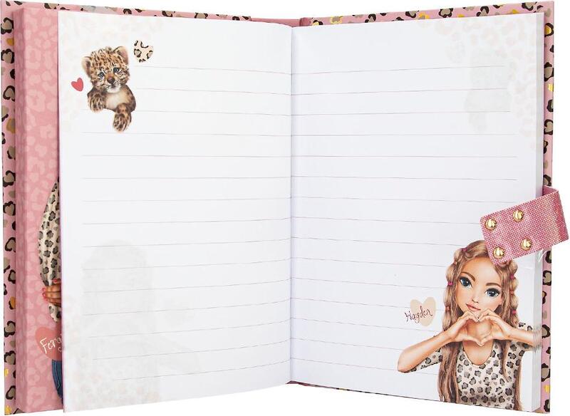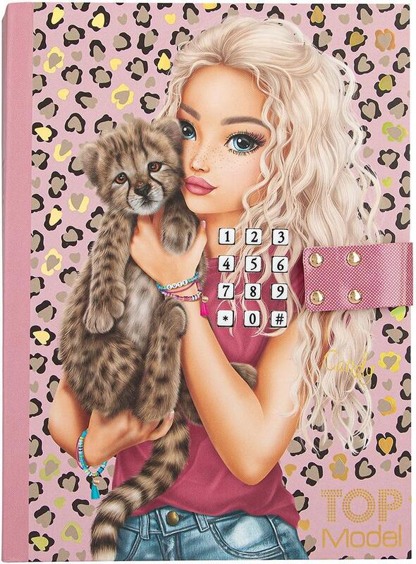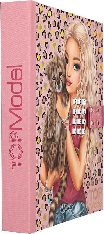 Produse de patiserie cu motiv leopard – agenda TOPModel cu cod de patru cifre ajustabil și efect sonor la deschidere. Conține 80 de pagini ilustrate legate între ele.