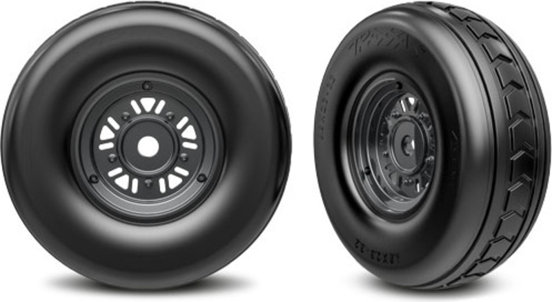 Traxxas kolo 3.2/4.9", disk Pro Scale® Sand Car čierny chróm, pneu - šípové (predné) (pár). Kompletné nalepené. Na dokončenie použite krúžky #10976.