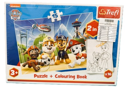 Trefl 2 în 1 puzzle și cărți de colorat Paw patrol